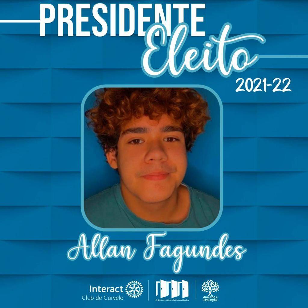 O companheiro Allan Fagundes é o presidente eleito do Interact Club de Curvelo para o Ano Rotário 2021/22! Desejamos a você muita coragem e sabedoria para enfrentar os desafios da presidência e conte conosco para construirmos uma gestão linda! Estamos com você, Allan!