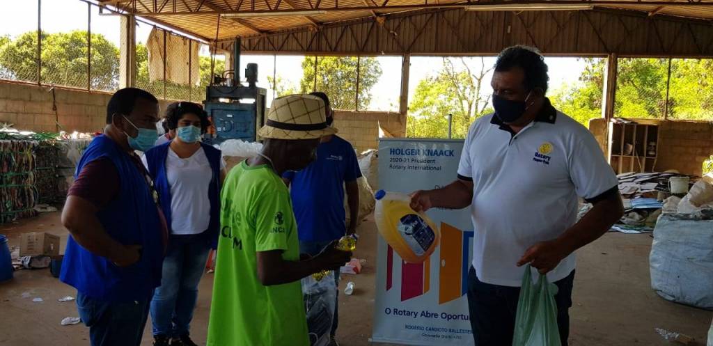 Hoje, 26 de março de 2021, associados do Rotary Club de Pirapora Praia estiveram juntamente com um equipe da Vigilância Sanitária do Município de Pirapora na sede da Associação dos Catadores e Recicladores de Pirapora (ASCARPI) e na sede da Cooperart com objetivo de doar máscaras faciais e produtos de limpeza. Dentre os servidores muncipais estava o coordenador da vigilância Mário Cristiano da Cunha.