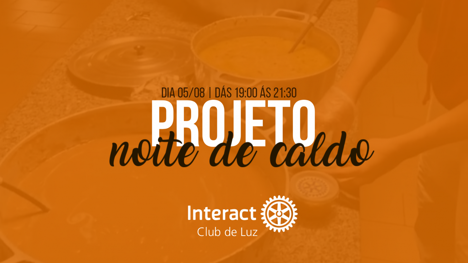O projeto Noite de Caldos foi realizado por nós do Interact Club de Luz, presencialmente na sede do Rotary Club de Luz, no dia cinco de agosto das dezenove horas ás vinte e uma horas e trinta minutos, o mesmo teve o intuito de arrecadar fundos para a realização de projeto futuros. O projeto foi um sucesso, no qual nós trouxe o lucro de mil e setenta e quatro reais e trinta e cinco centavos para nosso caixa.